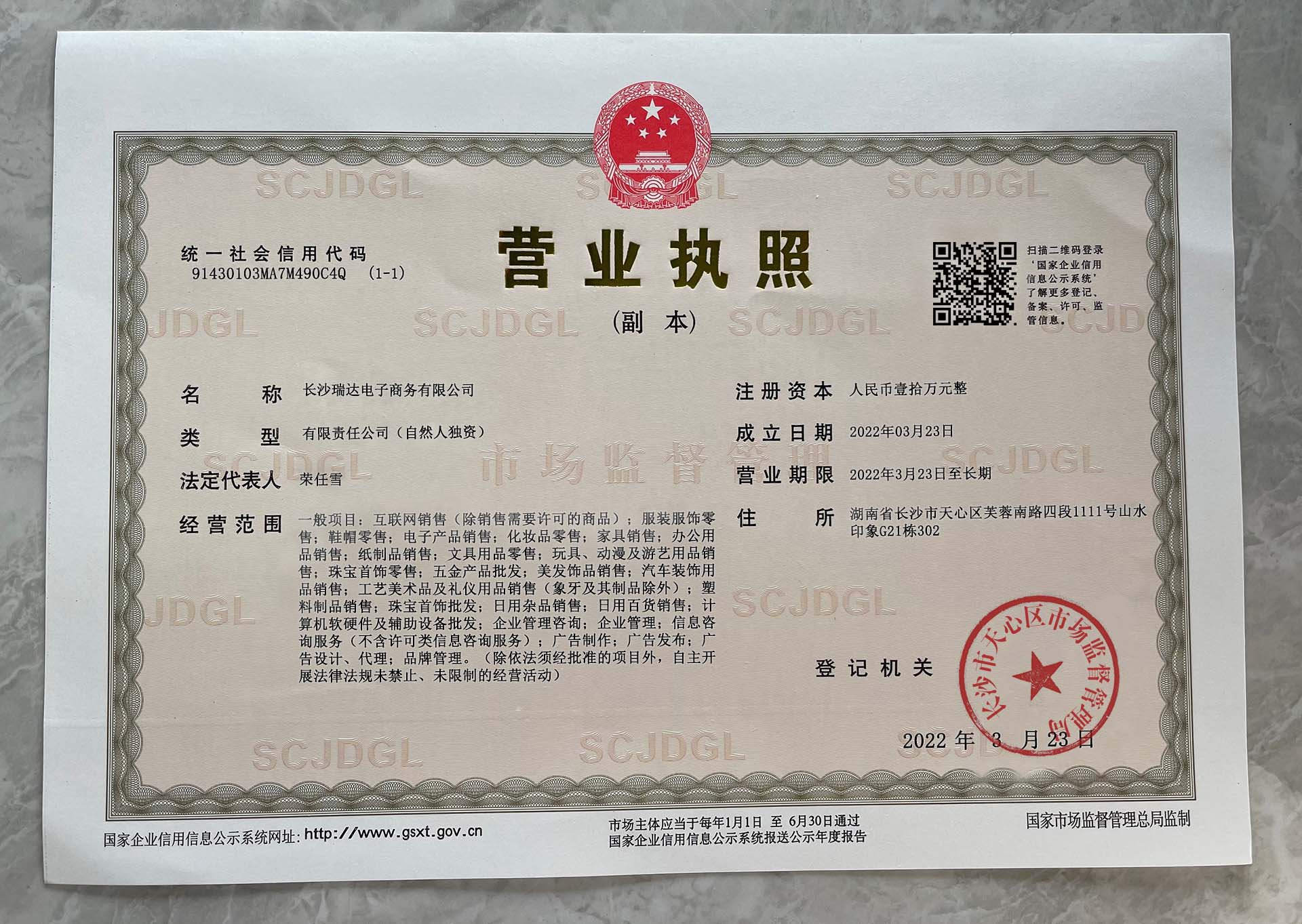 Corporate name:Changsha Ruida E-commerce Co., Ltd
